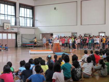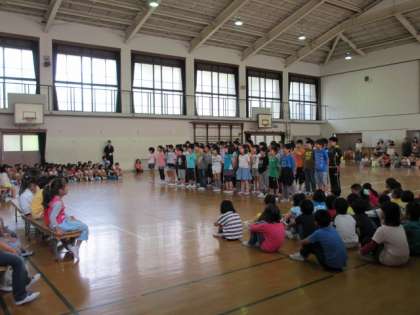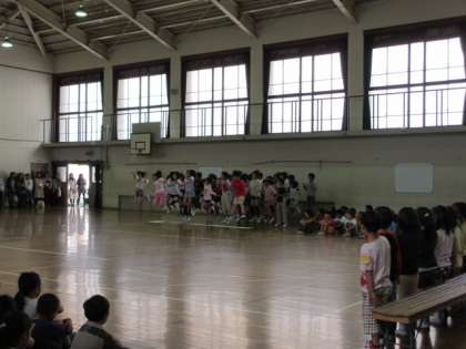 4年生からは,動きをつけた言葉のプレゼントがありました。5年生は「ハロー」という歌の合唱をしました。6年生は,とび箱と「翼をください」の合唱をプレゼントしました。