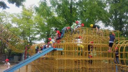 大きな遊具がたくさんあって, 楽しそうな声が聞こえてきます。