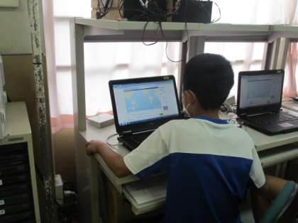 10月2日(木),6年生の外国語活動の様子です。Lesson 5で行きたい国の紹介をします。それに向けて,行きたい国についてインターネットで調べました。