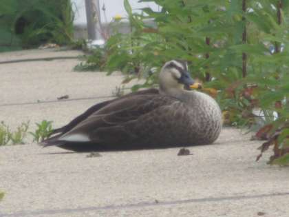 学校のプールにマガモがやってきました。気持ち良さそうに日光浴をしていました。