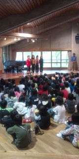 元気よく目覚め,7時から朝の集いに参加しました。池田東小学校の紹介をしました。