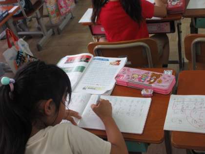 6月24日(水),1年1組では,音楽「はくをかんじてリズムをうとう」の学習で,リズムに合わせて手拍子をしたり,体を動かしたりしました。1年2組では,算数「ひきざん」の学習で,計算カードで練習をしたり,ノートに問題を書いて解いたりしました。