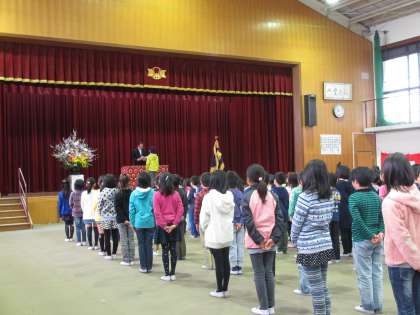 3月24日(木),平成27年度修了式が行われました。修了式の後,一年間での成長を振り返りながら,担任の先生から通知表を受け取りました。