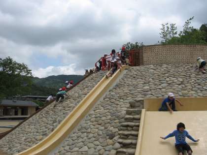 5月13日、宝ヶ池公園「子どもの楽園」に遠足に行きました。前日、雨が降って、天気が心配されましたが、日頃の行いがよかったのか?無事に行くことができました。一人一人が切符を買って電車に乗り、子どもの楽園に行きました。お楽しみのお弁当を食べて、楽しい遊具でしっかり遊びました。