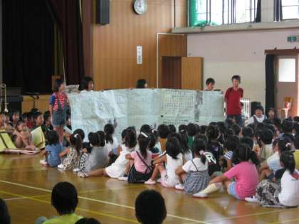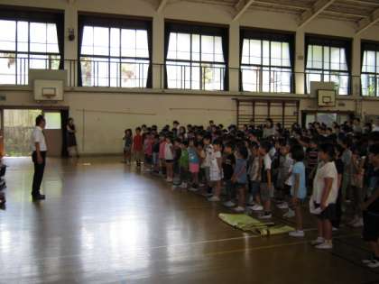 一校時に朝会を開きました。学校長の話の後に,4年生から発表がありました。国語の授業で取材して作った新聞を見せながらの発表でした。いよいよ明日から夏休みです。事故や病気に気をつけて楽しく過ごして下さい。