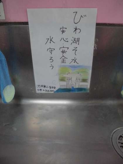 4年生は,社会科の「くらしと水」の学習で,まとめに大切な水を守るための標語をつくり,学校の手洗い場に掲示して,たくさんの人に水を大切にしてもらえるように呼びかけています。