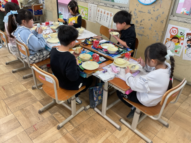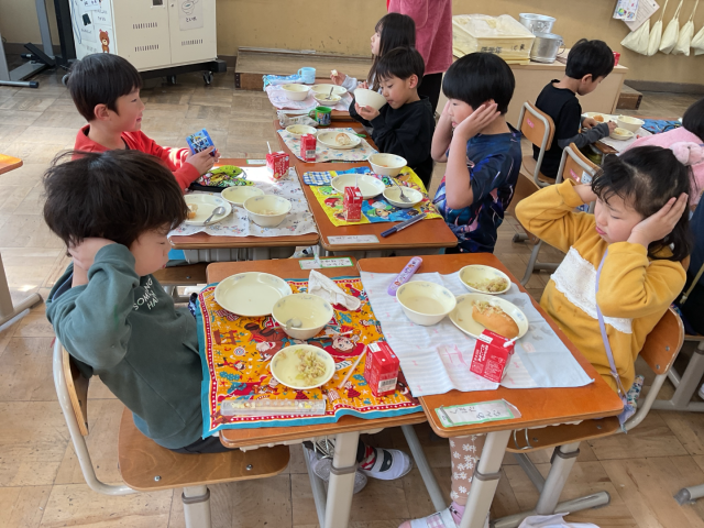 22日(月)~6日(金)は給食週間でした。3日(火)の4時間目に給食について学習しました。給食づくりのビデオを見た後、栄養教諭の藤川先生に、安全で美味しい給食を作るために工夫していることを教えていただきました。その日の給食も、全員完食!食感を楽しみながら、美味しくいただきました。