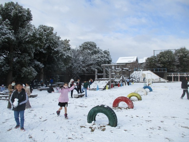 雪がたくさん積もったので、雪遊びをしました。