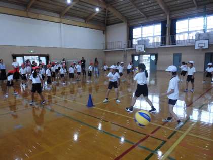 残念ながら雨が降ってしまい、体育の授業は体育館で行うことになりました。