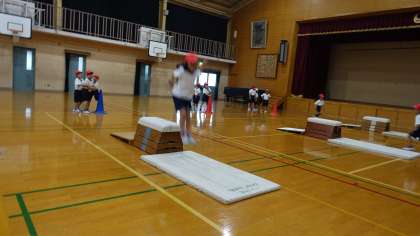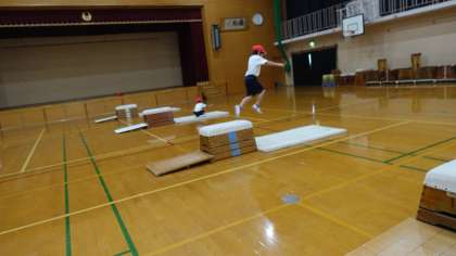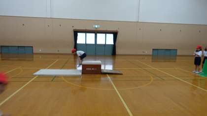 とび箱にとびのったりとびばこからとびおりたりして楽しんでいます。