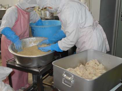 給食感謝の行事献立でした。“ヒレカツ”は,給食室で豚ヒレ肉に塩・こしょうをし,一枚一枚ていねいに衣をつけて,油で揚げました。やわらかく揚がった“ヒレカツ”には,教室で手作りのソースをかけて食べました。