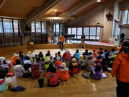 雪が降っていて,子どもたちからは「おおっー。」と,