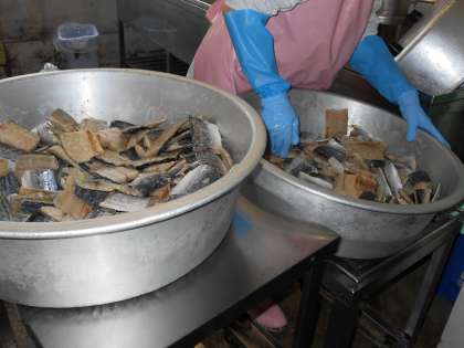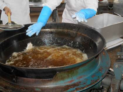 “さわらの塩こうじあげ”は,さわらを発酵調味料の塩こうじにつけ込み,米粉と片くり粉をまぶして油で揚げました。塩こうじがさわらの身をやわらかく,香ばしさを出します。