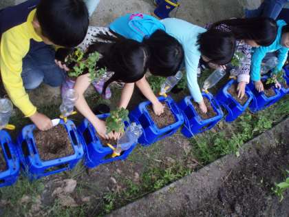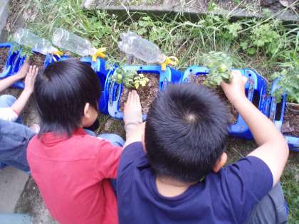 国語の学習で『かんさつ名人』になった2年生!!今日は,ミニトマトの苗をくわしく観察しました。葉やくき,実,花などをくわしく観察できました。そして,一人一人の植木鉢に苗を植えました。『早く食べた〜い。』とみんな収穫を楽しみにしています。