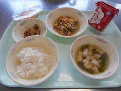 ひなまつりの行事献立です。「ひなまつり」は,「桃の節句」ともいわれます。ひな人形を飾り,桃の花やひしもちをそなえて,白酒でお祝いをする習慣があります。給食ではちらしずしと三色ゼリーで桃の節句をお祝いします。