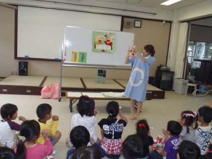 二匹のぶたというパネルシアターを見た後,正しい歯磨きの仕方や