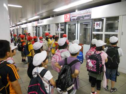 2年生になって初めての校外学習に出かけました。今回は初めて,電車に乗って出かけました。降りる駅の名前や乗り換えの駅の名前も事前に学習し,ドキドキの出発です!!