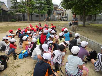 京都駅から近鉄線に乗り,近鉄十条駅の近くの西九条児童公園でお昼ごはんを食べました。たくさん歩き,おなかペコペコの子どもたちは,おいしそうなお弁当をあっという間にぺロリ!!その後はしばらく公園の中で遊びました。