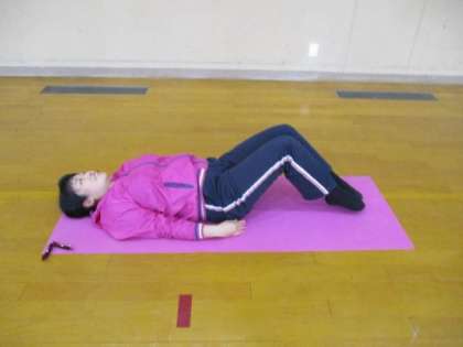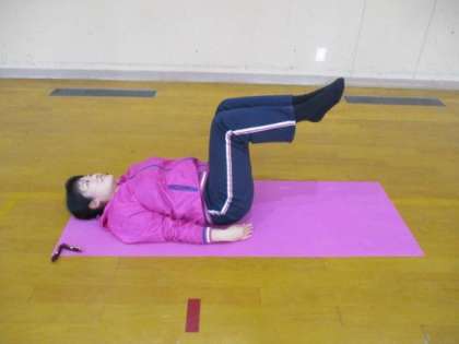 1枚目と2枚目の写真は足上げ腹筋です。仰向けになり,膝を立てた状態から太腿が床と垂直になるまで持ち上げた後は,つま先が床に着く手前まで足を下ろします。3秒で上げて5秒で下ろすリズムで行うと,下腹に効いてくると思います。呼吸も止めないように自然に行います。30回×3セットを目安にしてみてください。