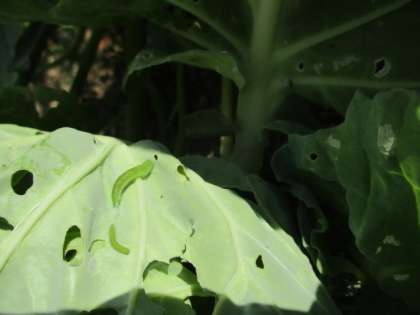 たまごから出てきたよう虫は,キャベツの葉を食べて大きく育っています。