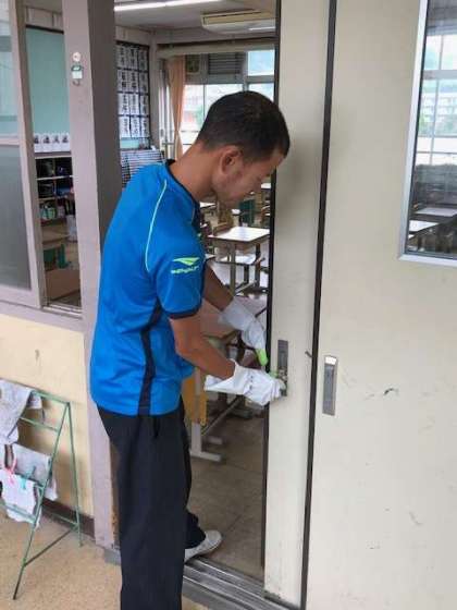 また,毎日,放課後に全教職員で教室や階段,トイレ,手洗い場など,たくさんの子ども達が触る場所を消毒しています。