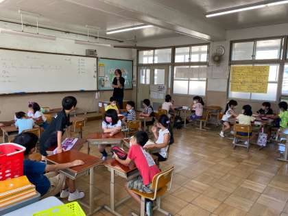 今日は登校日で,子どもたちは元気な姿を見せてくれました。クラスごとに夏休みの様子を確認したり,言葉遊びをしたり,ドッジボールをしたりしました。