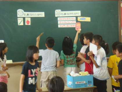 22日に、保健室の先生から歯みがきについて教えていただきました。