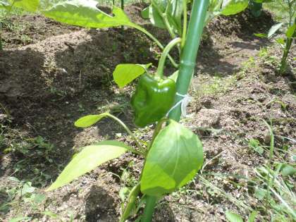 学年の畑で育てている夏野菜。なす・きゅうり・ピーマンが大きくなってきました。