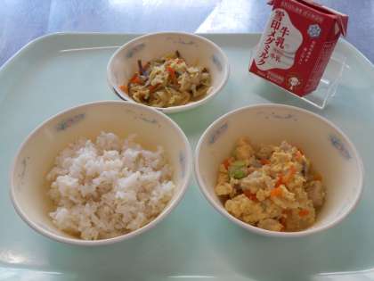 11月16日の献立は,「麦ごはん・牛乳・高野どうふの卵とじ・ごま酢煮」でした。