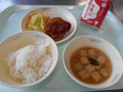 11月18日の献立は,「ごはん・牛乳・トンカツ・野菜のソテー・みそ汁」でした。