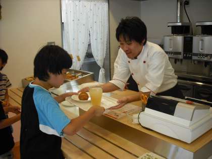 パンはセルフ式で好きなパンを選び,レジに持っていきました。そして,飲みたいジュースを注文して,合計のお金を支払いました。みんな自分の食べたいものを購入することができました。