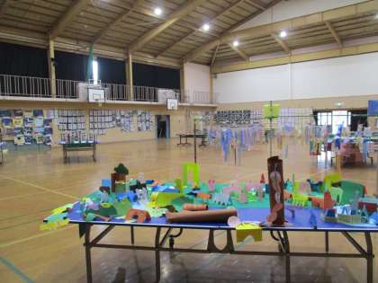 3月3日(水)から3月5日(金)の3日間,体育館前面を使って「校内作品展」を行いました。各学級・学年の児童が3つの作品を展示しました。約800点もある作品を全て観るには時間がかかりましたが,工作・絵画・書写・リーフレット等様々な種類の作品を一つ一つ楽しみながら子どもたちは鑑賞していました。