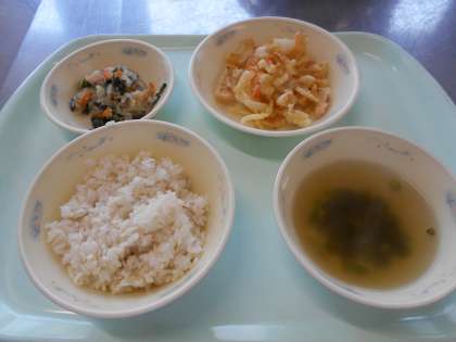 4月26日の献立は,「麦ごはん・春野菜のかきあげ・小松菜と切干大根の煮びたし・ゆばのすまし汁」でした。