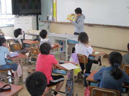 本日,今年度初めての「教職員読み聞かせ」を朝読書の時間に行いました。今回1年生の教室へは,校長先生と教頭先生が行くことになりました。子どもたちはそれぞれのお話を楽しそうに聞いていました。他学年の教室でも,楽しい話や考えさせられるお話等,教職員がそれぞれに伝えたいことを本に託して読み聞かせを行っていました。