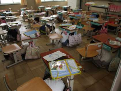 本日2校時に,全校でシェイクアウト訓練を行いました。1年生の子どもたちにとっては,小学生になって初めての訓練です。訓練前には不安そうな顔をしている子ども見られましたが,放送で緊急地震速報が流れると素早く机の下に入り,身を守る行動をとることができました。これからも訓練や安全指導を通して,考えて行動し安全に避難行動がとれる力を育んでいきたいと思います。