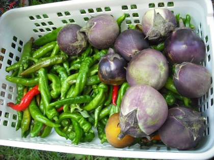 夏休みがあけ,草が伸びていたのでみんなで草引きをしました。その後,たくさんの万願寺とうがらしや賀茂ナスを収穫しました。