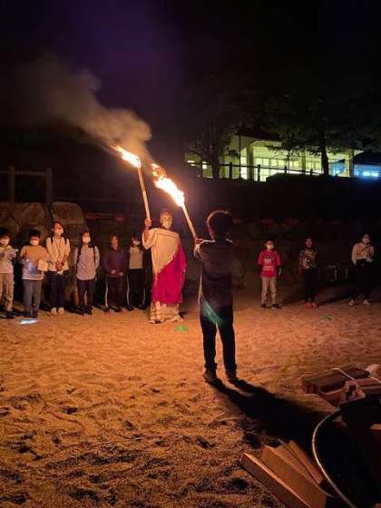1日の終わりにみんなでキャンプファイヤーをしました!