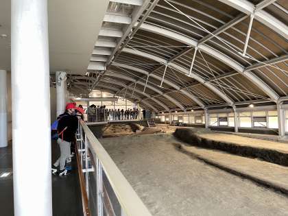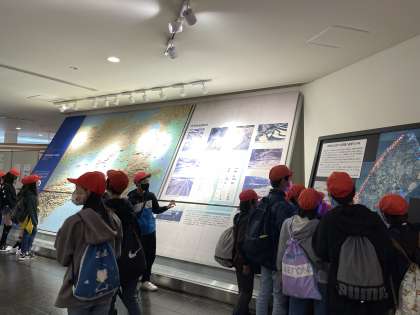 マグネチュード7.3の地震で出来た野島断層の説明を聞いています。