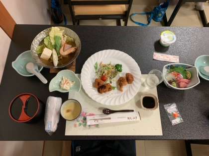 昨日の夕食は、地引網で撮った魚をお刺身や天ぷらにしてくださったものも、舟盛りから取り分けて添えてくださっていました。