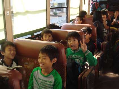 山の家に向かうバスの中の様子です。