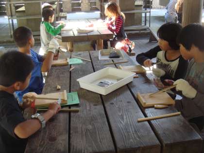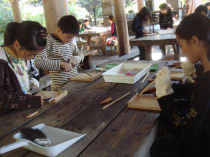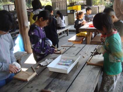 みんながんばって,世界でたった一つの竹ばしを作りました。