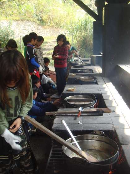 4日目は,11時から野外炊事をしました。