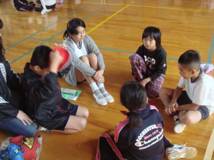 部屋の掃除と整理を終えると,プレイホールで5日間の振り返りを行いました。
