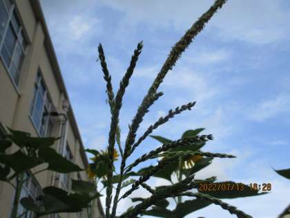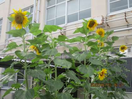 中庭の畑の植物も、どんどん育ち、ひまわりは全部大きな花をつけました。太陽に照らされ中庭を明るく照らしているようです。