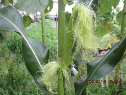 同じ畑で育てているとうもろこしも、穂と実をつけました。