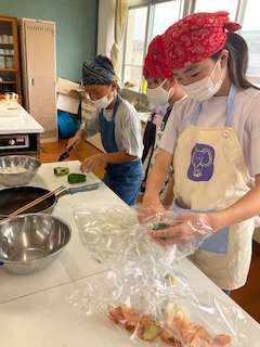 家庭科で栄養バランスのよい朝ご飯のメニューについて学習しました。