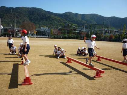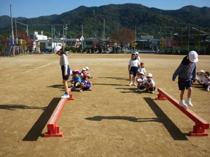 体育でへいきんだいあそびに取り組みました。運動会では真っ直ぐ渡りきるだけでしたが,今回はいろいろなわたり方やポーズに挑戦し,自分でわたり方やポーズを工夫してがんばりました。