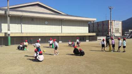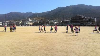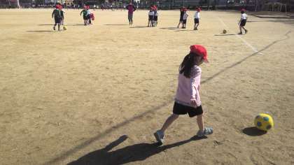 二人で向き合ってパスの練習をしたり、2対1で攻めと守りの練習をしたりしています。次はチームで作戦をたてゲームを行っていく予定をしています。