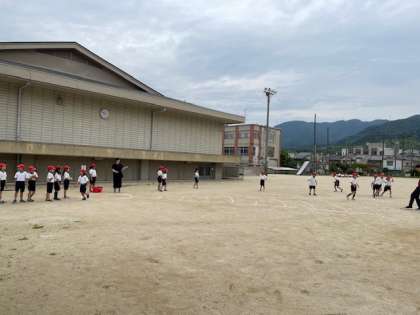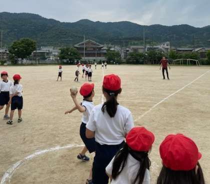 2年生が体力テストのソフトボール投げに挑戦しました。空に向かって力いっぱい投げることができました。自分の記録にとても満足している様子でした。