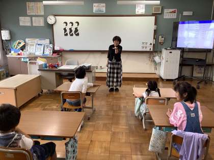 『おへそのひみつ』の紙芝居を通して学習しました。赤ちゃんの人形を実際に抱いてみて重さを体感したり、ふりかえりでは,おかあさんからたくさんの栄養をもらって大きくなったんだとワークシートに記入する姿もありました。